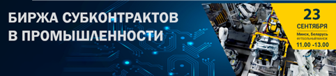 В соответствии с пунктом 26 Комплекса мероприятий по реализации Государственной программы «Малое и среднее предпринимательство» на 2021–2025 годы, утвержденной постановлением Совета Министров Республики Беларусь от 29 января 2021 г. № 56, Белорусский фонд финансовой поддержки предпринимателей (далее – БФФПП) при содействии Министерства экономики Республики Беларусь 23 сентября 2025 г. с 11:00 до 13:00 часов в рамках Белорусского промышленно-инновационного форума – 2025 организовывает 15-ю биржу субконтрактов в промышленности (г. Минск, пр. Победителей, 20/2, конференц-зал № 1, футбольный манеж).