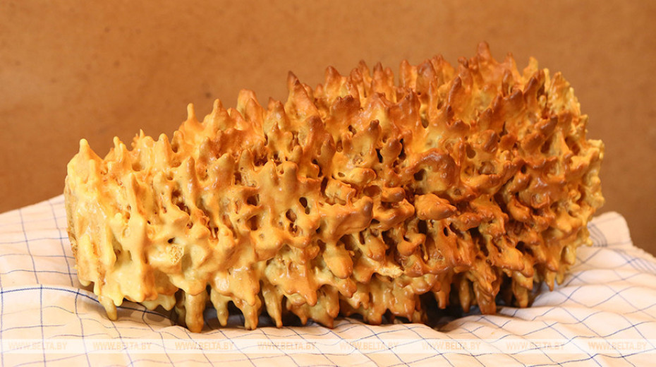А самое, пожалуй, оригинальное традиционное угощение на Гродненщине - "порозовская банкуха" в Свислочском районе. Сегодня мастерством ее приготовления владеют умелицы из нескольких семей в трех поколениях. Одна из них - хозяйка агроусадьбы "У Рыся" Янина Казюк. Внешне местный торт очень похож на елку с веточками. Рецепт и внешний вид "порозовской банкухи" отличаются от аналогов из соседних стран: наша более ветвистая и не имеет дополнительного декора. Такую выпечку гости с радостью увозят с собой как вкусный сувенир.-0-