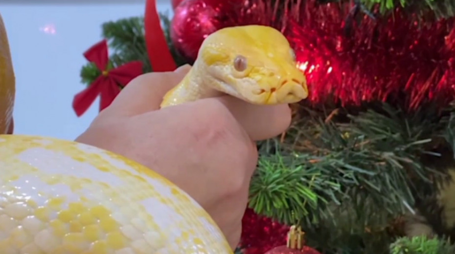 Как пояснили в зоопарке, тигровый питон Лютик - альбинос, потому у него такая необычная золотая окраска. Он живет в зоопарке с 2022 года. Лютик еще растет, его длина всего 1,8 м, в то время как длина его подруги Василисы превышает 5,5 м.-0-
