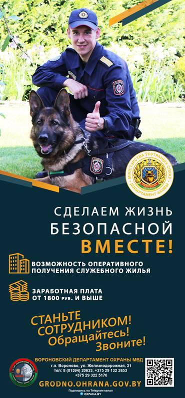 Вороновскому отделу Департамента охраны Министерства внутренних дел срочно требуются на работу: