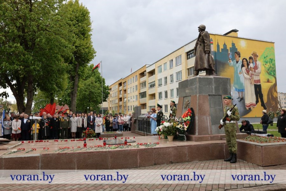 — 9 мая — священная дата в истории Беларуси. Она навсегда останется символом отваги и патриотизма нашего народа, готовности защитить свою Родину и даровать свободное будущее потомкам. Этот день воплощает в себе великое прошлое нашей страны, — открыл митинг глава района Василий Шлык. — Мы склоняем головы перед светлой памятью тех, кому не суждено было вернуться с полей сражений, перед ушедшими от нас ветеранами Великой Отечественной войны. Низкий поклон труженикам тыла, землякам, прошедшим испытания концентрационными лагерями, за жизненную мудрость и активную гражданскую позицию. Мы равняемся на поколение Победителей, на его умение беречь дружбу и стойко переносить невзгоды, искренне и беззаветно любить Родину. Наш долг — передать эту эстафету следующим поколениям, воспитать у молодежи уважение к истории и гордость за свою страну.