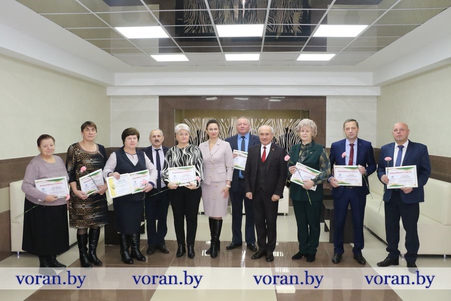 Профсоюзный лидер вручил награды председателю районной организации профсоюза работников АПК Олегу Тарасову, казначею Регине Станкуть, главному специалисту райсельхозпрода Валентине Казак, ветерану труда Антону Головне, директору и главному экономисту КСУП «Мисевичи» Андрею Бурносу и Ядвиге Лисовской, директору Вороновского ПМС Станиславу Бурчу, директору Вороновской райплемстанции Евгению Балько, председателям первичек профсоюза сельхозпредприятий «Гирки» и «Больтишки» Дануте Лунь и Ядвиге Пальш.