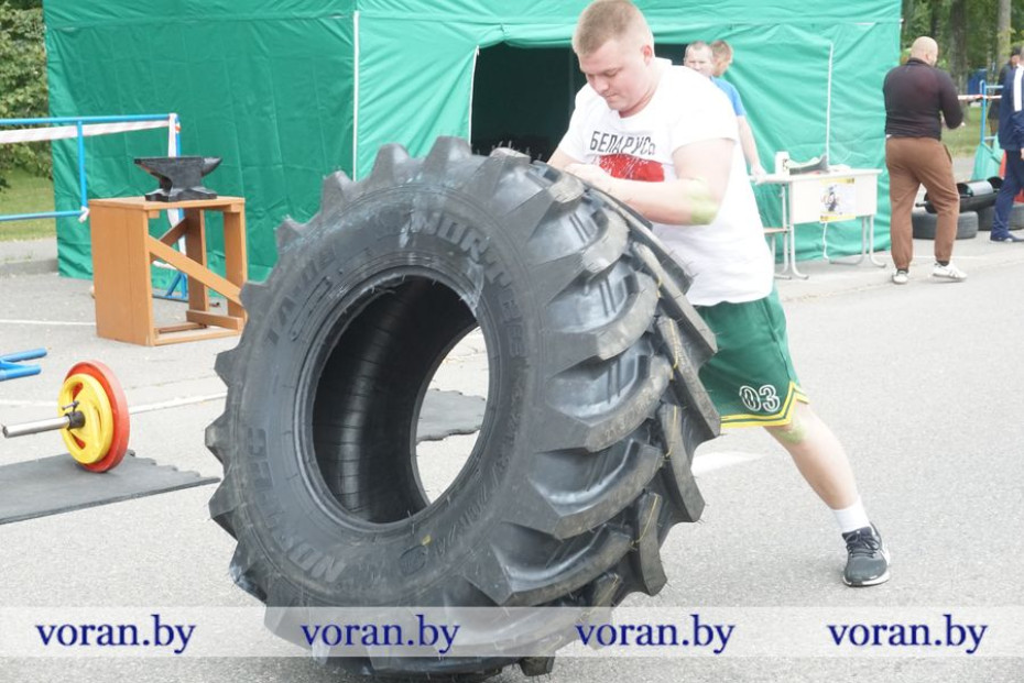 В соревнованиях принимали участие четыре силача из Вороновского района и один из Лидского. Продемонстрировать всю свою мощь и показать мастер-класс в проносе наковальни весом 60 кг, становой тяге штанги весом от 120 кг, кантовке «амкодоровского» колеса в 140 кг и подъеме бревна над головой вызвались сегодня Евгений Жилинский из Вороновского отдела Департамента охраны МВД, Эдгар Войтеховский из КСУП «Дотишки», Евгений Лукашун из КСУП «Гирки» и самый молодой 20-летний Ярослав Картанович из Вороновского РОЧС. Среди участников был и мировой рекордсмен в экстремальном подъеме штанги на бицепс (130 кг) лидчанин Александр Лавыш, который трудится в ОАО «Гвидек».