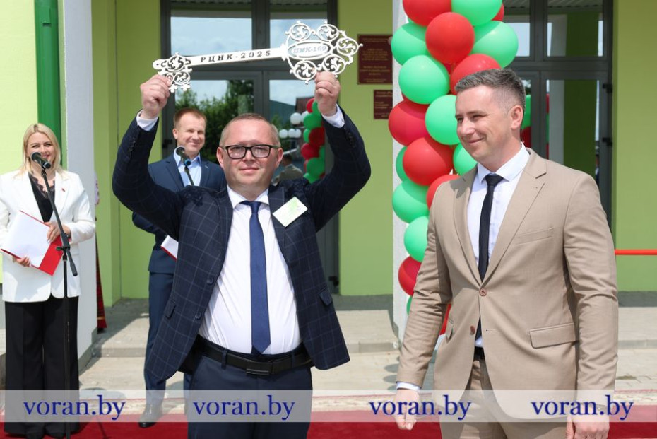 Символический ключ исполняющий обязанности директора Лидской ПМК-169 Дмитрий Почобут передал заведующему Радунским центром национальных культур Виталию Адамицкому. Освятили комплекс настоятели католического и православного храмов в городском поселке Радунь Станислав Пацына и Игорь Шулейко.