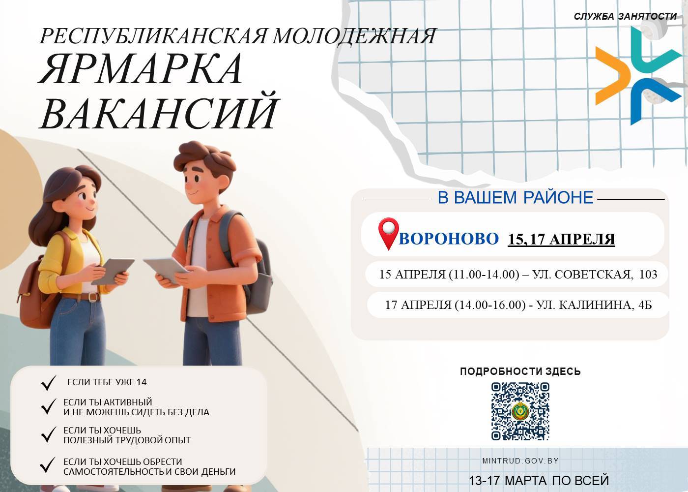 Заместитель начальника управления – начальник отдела по труду и занятости – Тарасова Светлана Владимировна, тел.: 8(01594) 43201